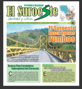 Cumplimos 19 años de contar el Suroeste antioqueño, 19 años de retos y transformaciones. 199 ediciones que se han distribuido de forma gratuita en los 23 municipios de la región y centeneras de historias que se han narrado en nuestros canales digitales. GRACIAS a nuestros lectores, seguidores, colaboradores y a todos quienes han hecho parte del Periódico Regional EL SUROESTE.
