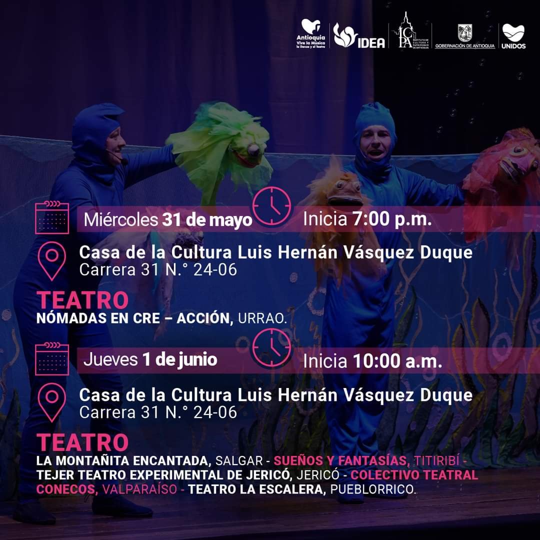 Antioquia Vive la Música, la Danza y el Teatro es un programa del Instituto de Cultura y Patrimonio de Antioquia. Desde 30 de enero se dio apertura a la convocatoria para la participación de grupos de música, danza y teatro en los Encuentros Subregionales.