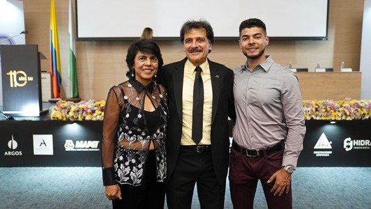 El ingeniero William Giraldo, junto a su familia, durante la condecoración como Gran Maestro de la ingeniería antioqueña. FOTO EPM