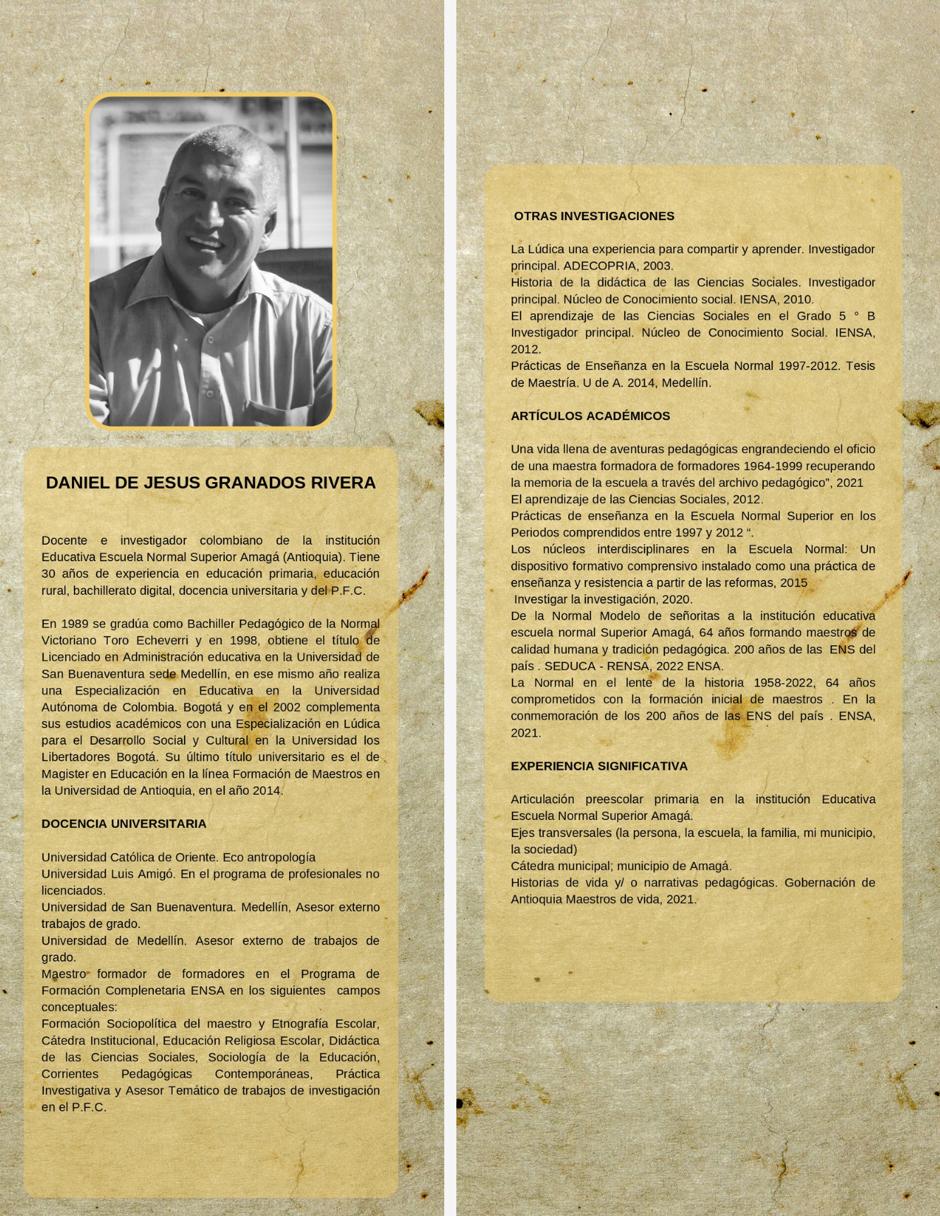 Daniel de Jesús Granados Rivera, maestro e investigador de la Institución Educativa Escuela Normal Superior Amagá, sistematizó en un libro llamado Aventuras Pedagógicas de una Maestra, la vida y enseñanza de Genoveva Betancur González, una maestra que le dedicó 35 años de su vida a formar niñas y niños; y que actualmente considera a la escuela como uno de sus grandes amores.