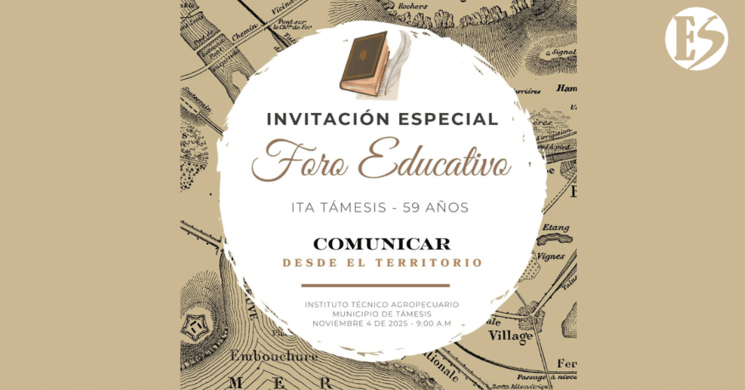 El próximo 4 de noviembre, en el  Instituto Técnico Agropecuario -ITA del municipio de Támesis se llevará a cabo el Foro Educativo ITA 2025, bajo el lema “Comunicar desde el territorio”. Este encuentro académico de carácter regional busca reflexionar sobre el papel de los medios regionales, comunitarios, independientes y alternativos como pilares de una comunicación auténtica, cercana y comprometida con la realidad local.