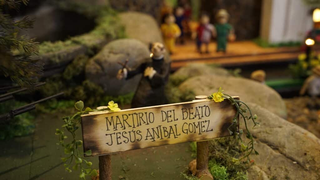 A estas escenas se suman nuevos perfiles temáticos. Su creador señaló que “tenemos también un perfil nuevo que es el de mitos y leyendas, tenemos a la Llorona y a la Madre Monte y en la epopeya de nuestra tierra a la Madre Laura y al Beato Jesús Aníbal Gómez”. El pesebre también incluye personajes del municipio, una tradición que se mantiene y que este año presenta cinco nuevos habitantes en miniatura. “Hay algunos personajes del pueblo que están ahí en el pesebre, entonces este año hay cinco nuevos personajes que están representados un signo de interrogación para que la gente del pueblo lo reconozca”, afirmó.