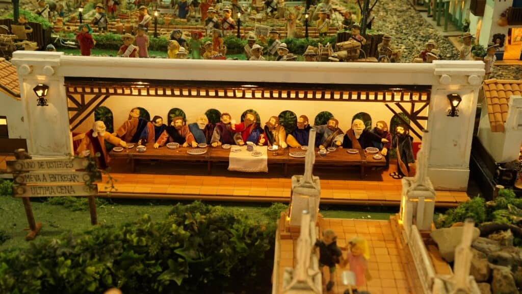 Luis Fernando Betancur Merino, arquitecto y creador del pesebre, explicó que esta edición incorpora novedades tanto en relatos bíblicos como en representaciones culturales. Según dijo, “este año, para los que ya lo han visitado, tiene pues unas novedades que se pueden resumir en que en relato bíblico tenemos la última cena que es del Nuevo Testamento, tenemos el sacrificio de Isaac del Antiguo Testamento y tenemos a San José y el Niño Jesús también del Nuevo Testamento en medio del pesebre”.