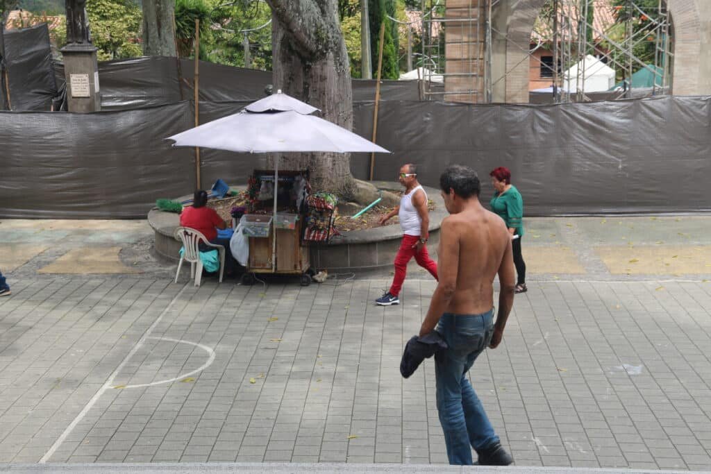 Como venía diciendo, parado en la mitad del parque de Amagá, miraba las ceibas, una madura y una niña. Apesadumbrado por el espacio público renuente, aquí las aceras hacen pactos burlescos con la muerte. Caídas, no solo de casas, de gente, la gente más desprotegida, la gente vieja que tiene que sortear con maniobras de equilibristas los temerarios pasos de acera a acera. ¡Ceiba!, ¡Ceiba!, ¡Ceiba!, deja caer tus muertos. A los custodios del parque le pusieron diagonal una estructura arquitectónica similar a la antigua entrada del Ferrocarril de Amagá. ¡Pueblo desmemoriado! Más de cien años después vuelven a erigir los fantasmas del pasado; construir memoria no es mampostería cegatona. Linda, espléndida ceiba, cada vez más apiñada en la colección de las cosas muertas.