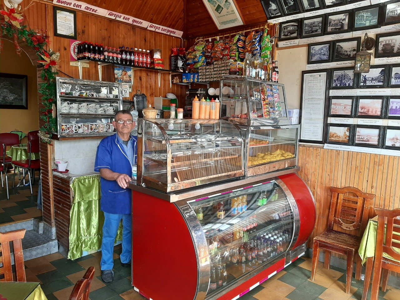 León Darío, uno de los curiosos, se animó a saludarnos. Le gustan mucho las fotos. Es uno de los personajes del pueblo y sabe que algún día su foto también estará en El Oasis. Así quedamos en la foto, porque no le gusta posar solo.