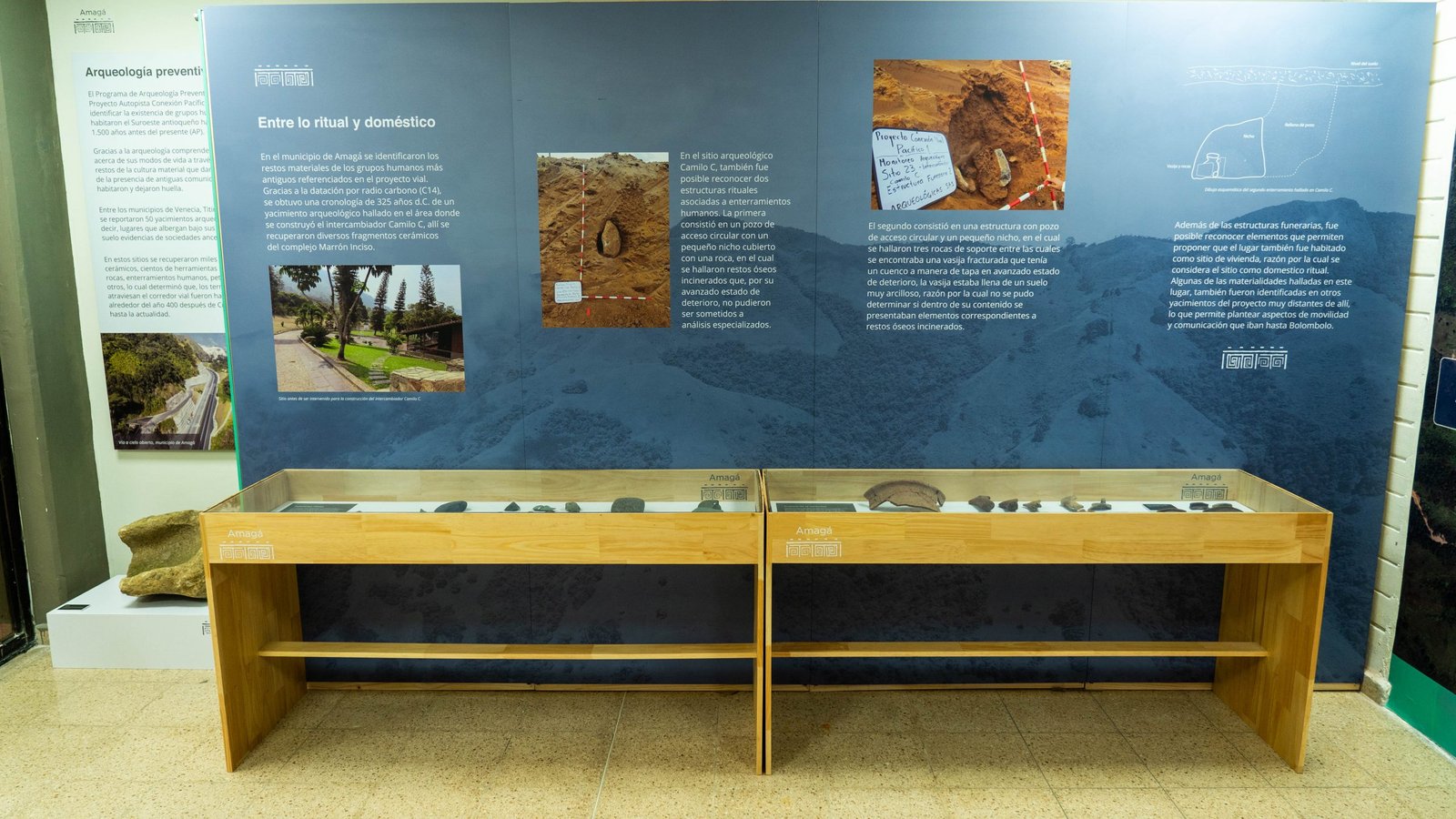 El viernes 1 de diciembre se dio apertura a la segunda sala museo del programa Arqueología Preventiva que lidera Covipacífico; en esta ocasión está ubicada en la biblioteca municipal Emiro Kastos de Amagá, donde se exhiben fragmentos cerámicos, herramientas hechas en roca, enterramientos humanos, petroglifos, entre otros.