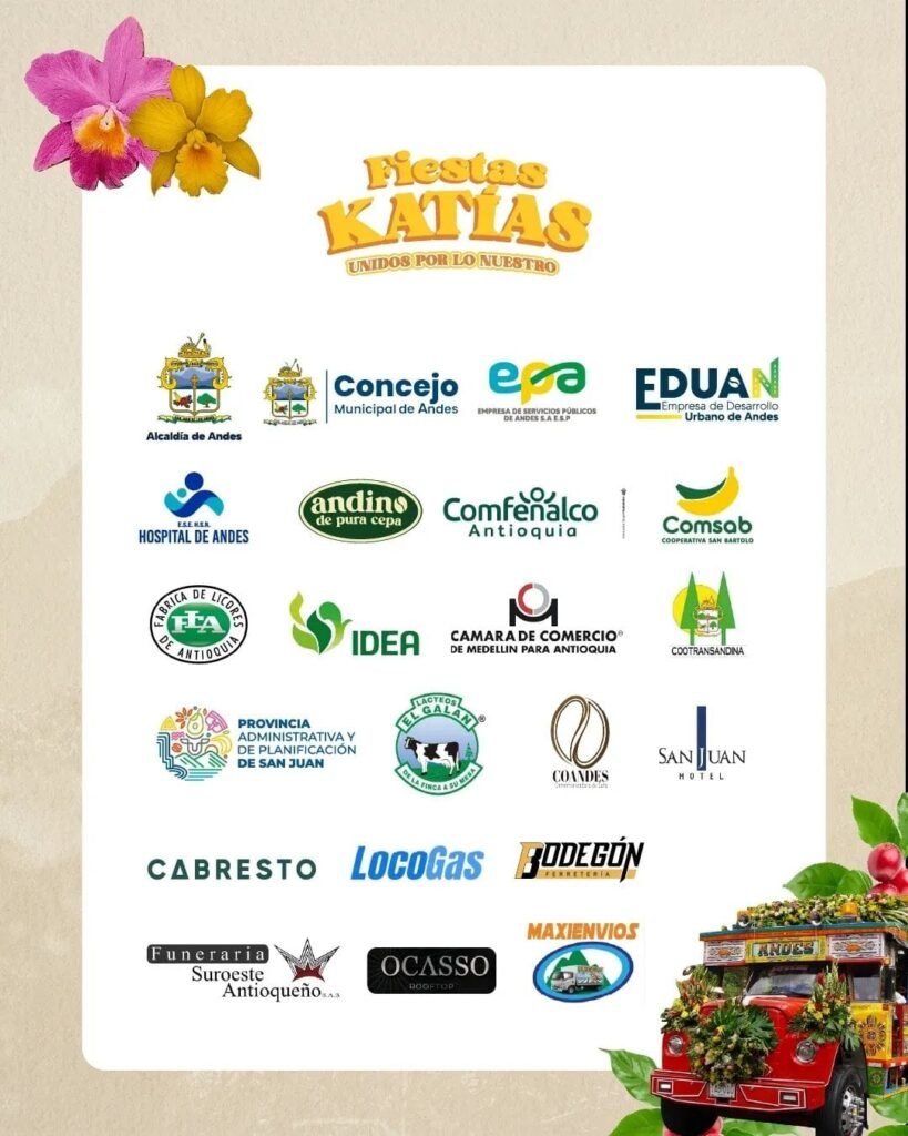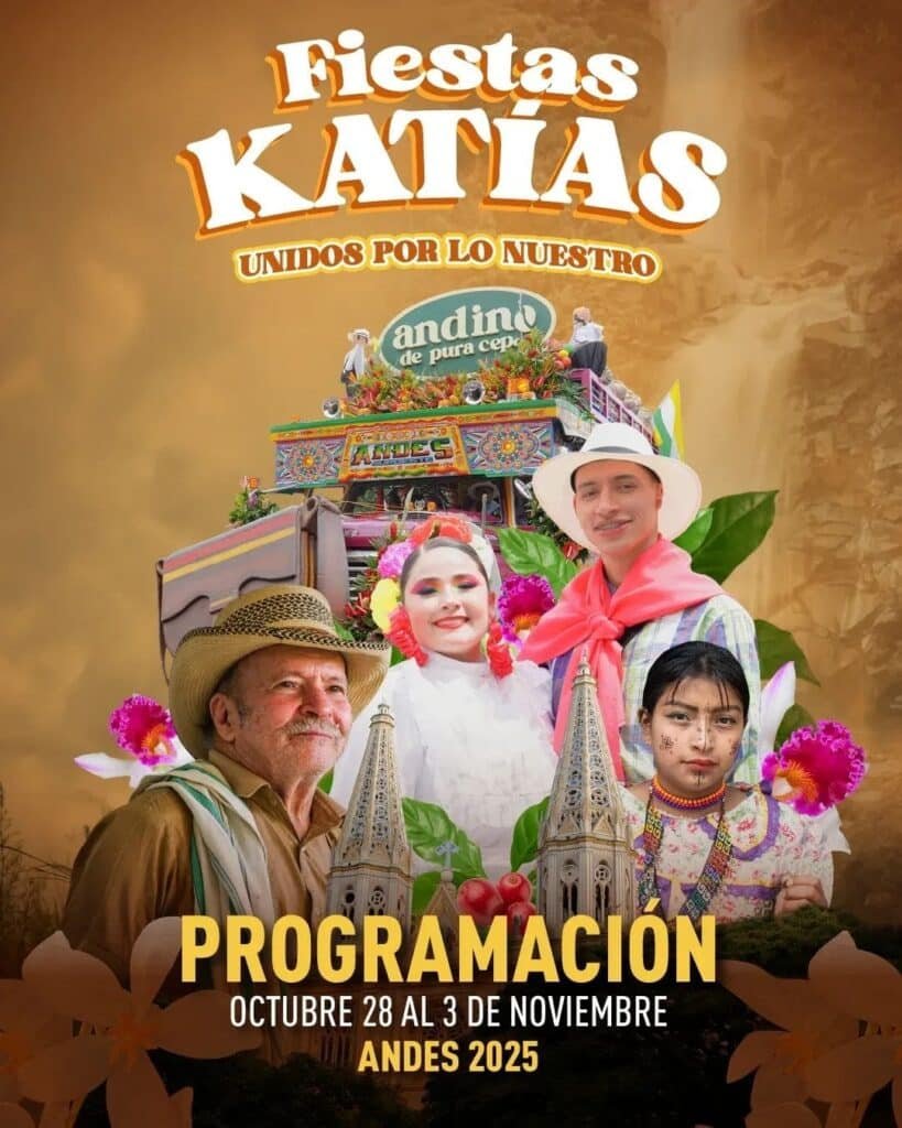 Del 28 de octubre al 3 de noviembre, el municipio de Andes celebra una nueva edición de las Fiestas Katías, una de las tradiciones más representativas del Suroeste antioqueño. Bajo el lema “Unidos por lo nuestro”, esta versión 2025 reúne a la comunidad en torno a la música, el arte, el deporte y la cultura, reafirmando el carácter festivo y participativo de la localidad.