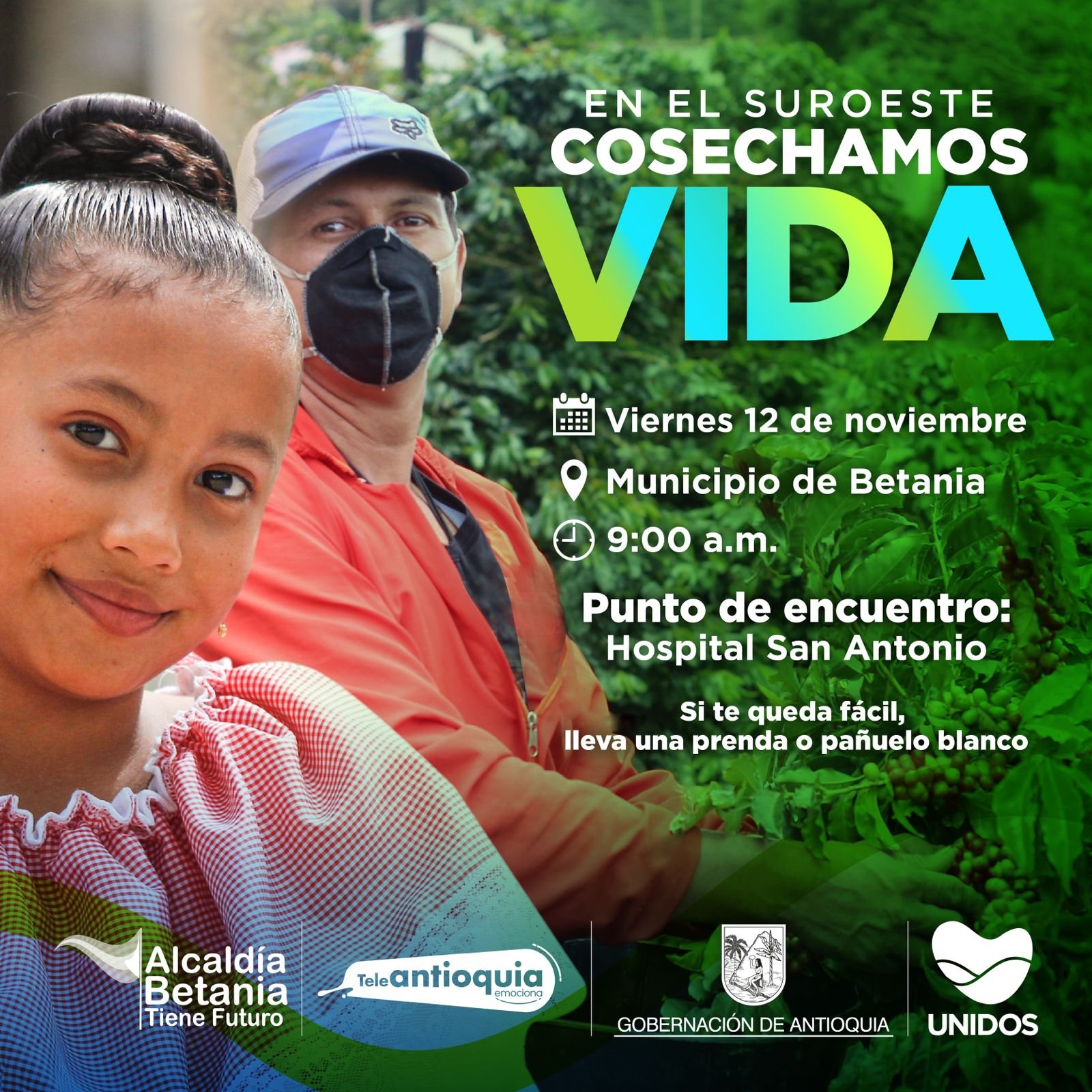 En este evento denominado En el Suroeste cosechamos VIDA habrá intervenciones culturales, una firma de Acuerdos por la Vida y la delegación de cada municipio sembrará un árbol de café en el Parque Educativo Farallones del Citará de Betania.