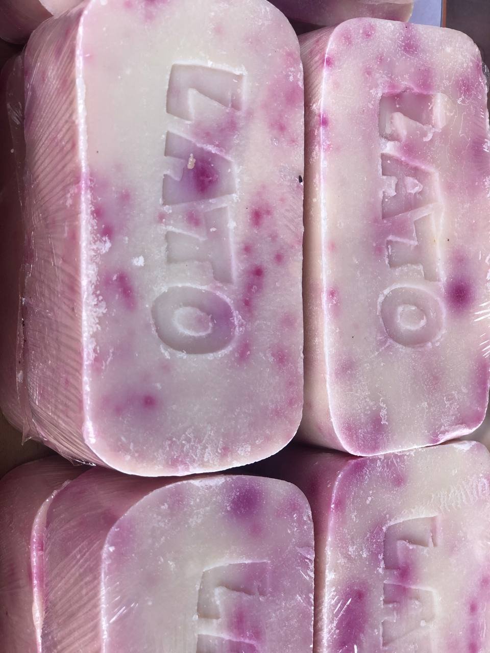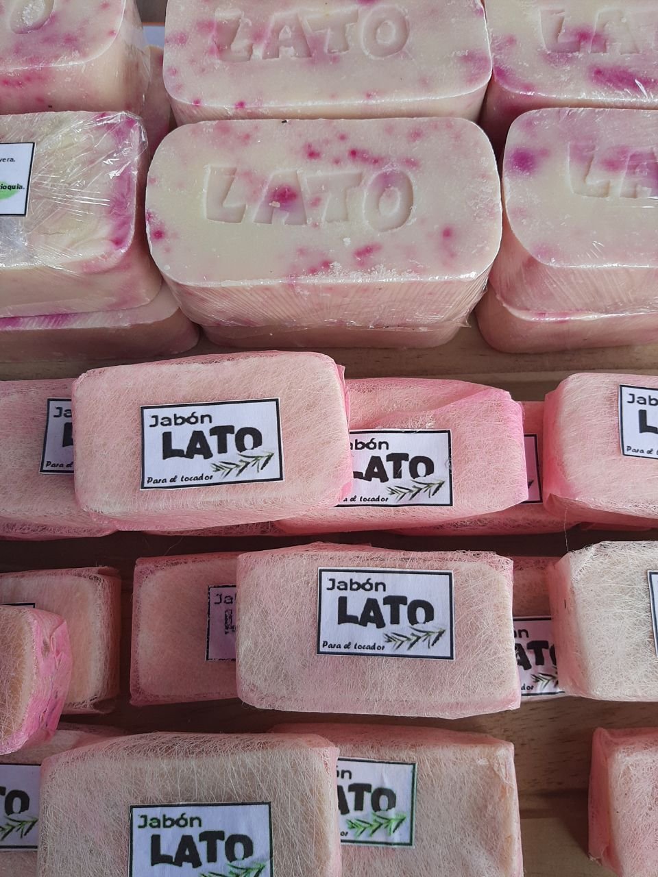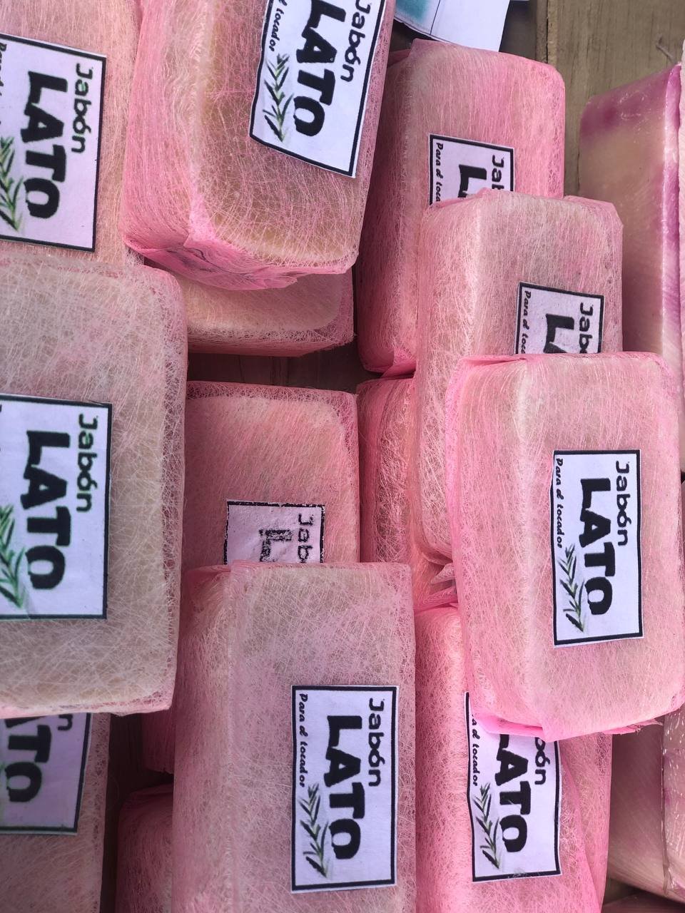 Jabón Lato es el emprendimiento del grupo de mujeres rurales Mulatico con amor en Tarso, Suroeste antioqueño. Horalia es integrante de este grupo, que entre otras actividades, desde hace cinco años elabora jabones artesanales para el aseo y el cabello. En el proceso han aprendido a utilizar menos químicos y más componentes naturales, los jabones son fabricados con aceites reciclados que pasan por un proceso de limpieza y filtrado para controlar el PH y esencias de plantas medicinales como la sábila y el romero.