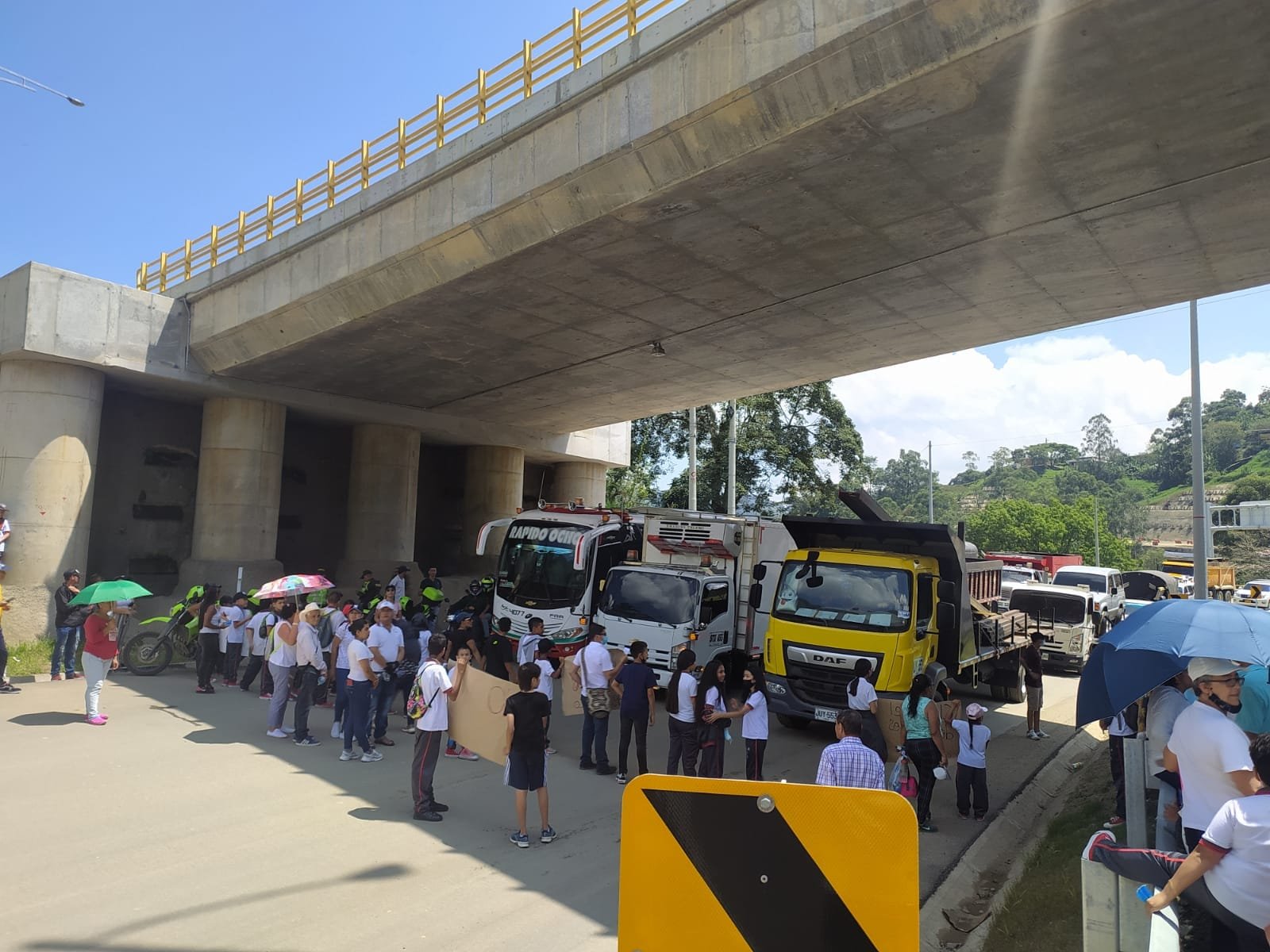 Este viernes 11 de marzo, la comunidad de Camilo C en el municipio de Amagá, se movilizó para reclamar a Covipacífico, concesionario encargado de la construcción del proyecto vial Pacífico 1, la garantía de la seguridad de los peatones en la vía y la construcción de puentes peatonales elevados.