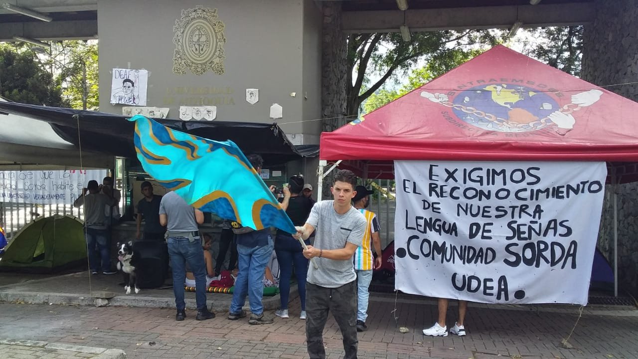 Las manifestaciones comienzan debido a un agotamiento histórico frente al acceso y la accesibilidad a la Universidad de Antioquia por parte de la comunidad sorda. La línea de tiempo comienza en el 2005 cuando se gradúa una promoción de jóvenes sordos del Colegio Francisco Luis Hernández Betancur en Medellín, Aranjuez; ellos intentan ingresar a la Universidad de Antioquia pero se encuentran con la barrera comunicativa del examen de admisión, desde ahí empieza la serie de intentos por ingresar a la Universidad de Antioquia, hasta que en el año 2013, decidieron hacer un plantón en el Parque de las Luces en Alpujarra, exigiendo frente a la Gobernación de Antioquia y la Alcaldía de Medellín, el acceso a la universidad sin respuesta; fue un plantón solo de un día. En el 2017 se inicia en la Universidad de Antioquia un proyecto llamado ‘Sordos en la U’, que buscaba que los y las sordas se pudieran organizar en la línea de UdeA Diversa, que trabaja con comunidades afro, comunidades étnicas y demás, para que se lograra empezar a hablar de la inclusión de la comunidad sorda y la adecuación del examen de admisión. Eso fue en el 2017 y hasta ahora no hay resultados. Es un agotamiento y una espera que no se puede sostener más.