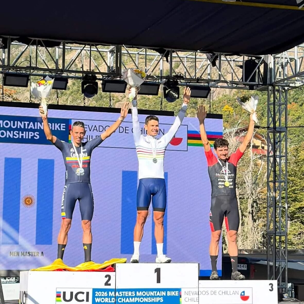 Todos estos nombres de personas, grupos, ciudadanos del municipio, la Administración Municipal de Amagá, empresas de ciclismo en relación con este deporte, estuvieron atentos a la transmisión del mundial de la UCI en Chile el pasado 29 de marzo del presente año, en la categoría, Cross Country Master A de cómo el hijo del Suroeste en el departamento de Antioquia, cruzaba uno de los países del Cono Sur para estar en virtud de tocar con sus manos el cielo. Mientras Jesús Garzón vuelve a casa e ignora este escrito, re-creo que bajo ese firmamento indómito de los Nevados de Chillán rugen historias de temperaturas inclementes, avanza la silueta que desafía a la gravedad y el cansancio. No es sólo un hombre sobre una máquina escribiendo su propia historia, el eterno Chucho sortea el barro, la gravilla y los murmullos del bosque en la geografía chilena. Su confrontación es una epopeya de las dos ruedas. El Cono Sur no se recorre, se conquista con el aliento. Chuchito lo sabe, en cada pedaleada sus piernas ejecutan una danza rítmica contra la resistencia de la tierra austral. El MTB deja de ser un deporte para convertirse en una conversación privada entre los neumáticos y la amplia cordillera. Así, el paisaje es un adversario, y en ocasiones un amigo. Los Andes son esos gigantes de roca que observan con frialdad el paso del ciclista, exigiendo un tributo de sudor en cada ascenso, su respiración y pulsaciones van a un punto límite que no admite fallos ni en lo mecánico ni en lo físico, la mente debe estar serena y no alterar la superficie, espejo del lago, ni siquiera con una hoja. La montaña se rinde a sus pies, al movimiento de los pedales y ante la determinación de quien ha hecho del ciclismo su credo, su propia religión. El polvo, el barro y la sal hacen una suerte de maquillaje que adoran el rostro del ciclista, un maquillaje de guerra, que hace testimonio mudo de los kilómetros atravesados no sólo en esta competencia, sino la suma de esas lágrimas y sudor que lo han traído hasta aquí: la cúspide de su propia historia. Nuestro Chucho, no busca el podio de metal, sino la plenitud del horizonte, su ángel que lo guarda en el cielo con su mirada inocente, lo abraza, en Colombia su esposa y su niño le dan esa vitalidad para renovar fuerza, al cruce donde la carrera se convierte en algo más estrecho, en el descenso, la bici es un halcón peregrino de carbono, y en la subida supera a la figura griega de Sísifo, un nuevo arquetipo moderno, que, a diferencia del mito, disfruta del peso de su propia voluntad. Porque para él, la cumbre no es el final del camino, sino el mirador desde donde planea su próximo desafío, el encuentro silencioso con su propio vuelo, un Ícaro que sabe sortear los cielos foráneos a su propia tierra.