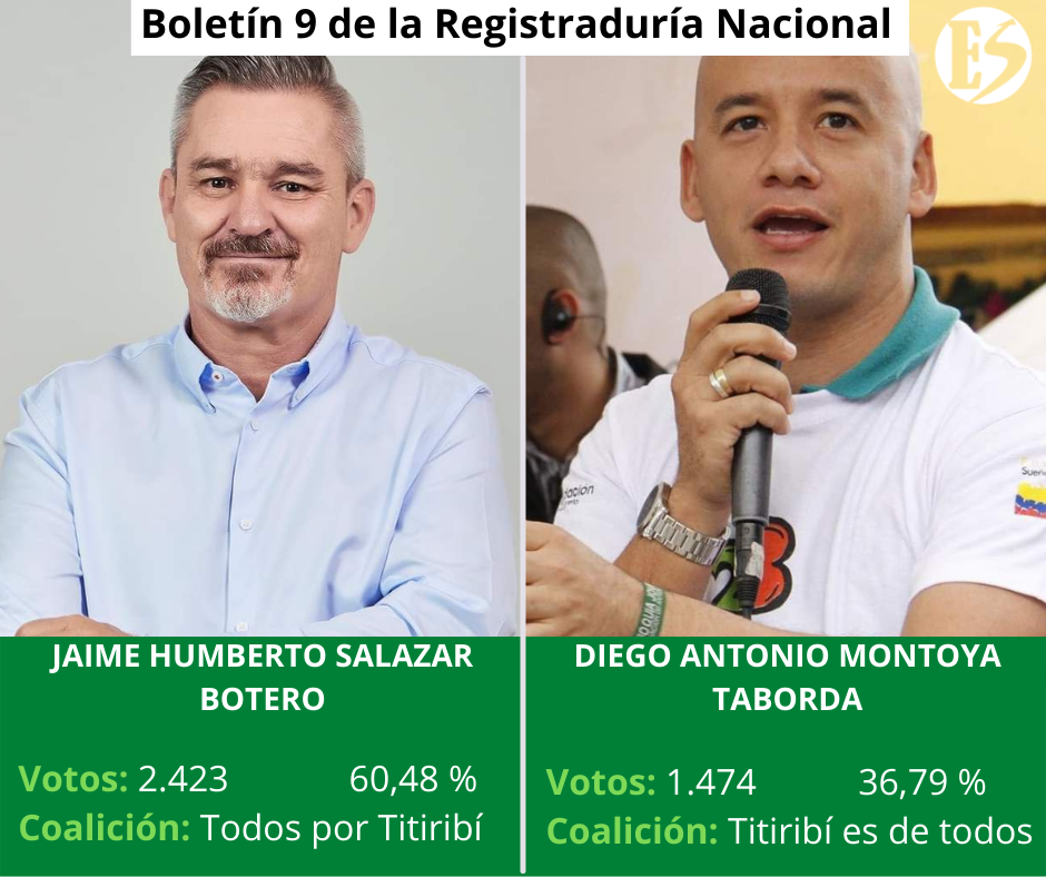 Con 2.423 votos (60.48 %) Jaime Humberto Salazar Botero es elegido alcalde del municipio de Titiribí.