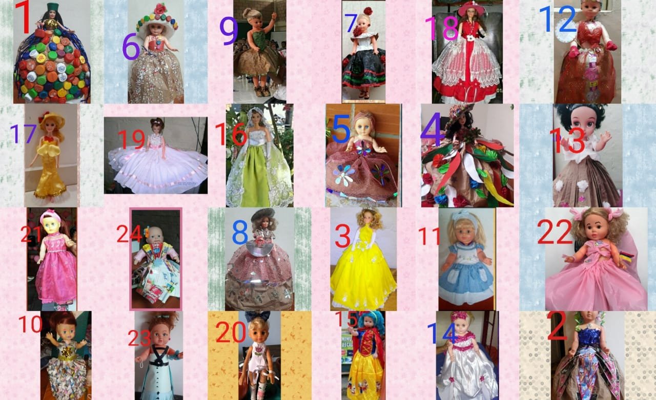 En este momento estamos en la campaña virtual, las muñecas están identificadas con un nombre y un número, también tienen un valor como el amor, la amistad… cada niña define un valor para su muñeca, que tiene un atuendo diseñado en su mayoría con materiales reciclables.