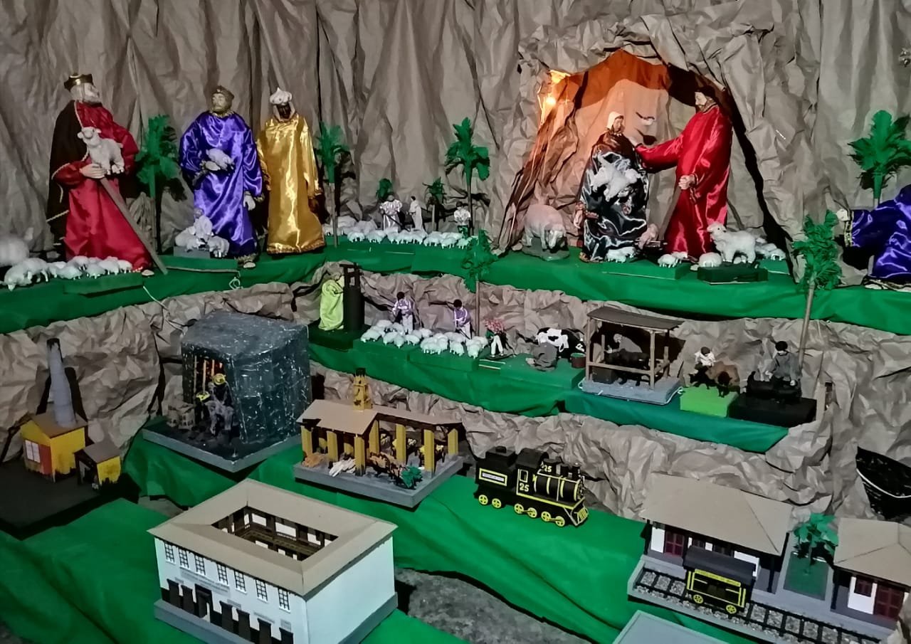 Jairo Franco se encargó de instalar cada figura en yeso, madera y metal en los pesebres, también pintó los telones, construyó la base de madera en la que va el montaje de cada uno y se encargó de los detalles para que la comunidad y visitantes los apreciaran durante la Navidad.