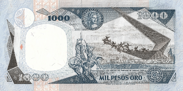 - En 1984, en el reverso del billete de $1.000 se imprimió la imagen del monumento a los Lanceros del Pantano de Vargas, obra del maestro Rodrigo Arenas Betancur.