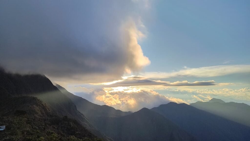 Era mediodía cuando los primeros caminantes llegaron al campamento base. A la 1:00 p. m. llegamos los últimos del grupo. Estábamos a 3.245 metros sobre el nivel del mar y ya me sentía extasiada y agradecida. Subir hasta esa altura fue bastante retador. Teníamos la intención de continuar ascendiendo ese mismo día, pero estábamos cansados y la mayoría desconocíamos lo exigente de su cumbre. Una nube oscura orbitaba en lo más alto; lo entendimos como una señal y decidimos quedarnos en el campamento para regresar a nuestros hogares al día siguiente. Sólo cuatro personas continuaron hasta llegar a su cresta.