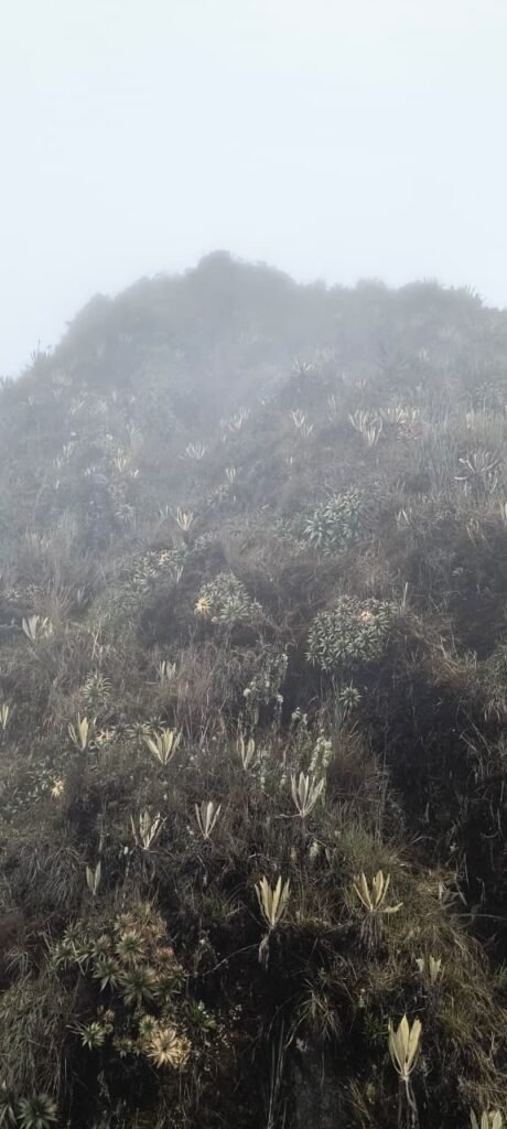 Después de varios años de caminar senderos y montañas, de sentir que iba superando algunos límites físicos y mentales, me creí valiente y capaz de acercarme. Con un grupo de compañeros de caminatas iniciamos el ascenso por sus caminos desde la parte alta del corregimiento San Bernardo de Los Farallones, el sábado 28 de junio de 2025, en la madrugada. Por momentos el miedo quiso acobardarme; me espantaba, sobre todo, la idea de su rechazo, pero mi mente guardaba un anhelo de encuentro.